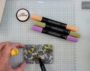 Next, I’m using Stampin’ Blends to color on the back of the vellum randomly. You may choose to carefully color each leaf separately instead.
