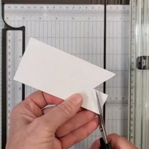Then cut the bottom (or leave it straight). I cut mine with the paper trimmer up from the bottom to the 3-1/2″ mark then trimmed from each bottom outside corner to the top of the cut.