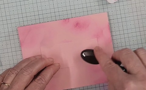 It starts with a card base that I’ve “smudged” by blending ink onto the card front to give it a little texture. I also added ink to a smaller piece of the same color to punch the greeting banner from.