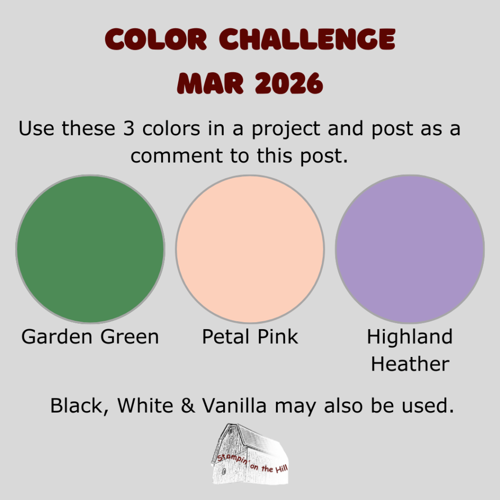 At the beginning of each month, I offer a color challenge. If you use only the colors listed in the challenge graphic and post a photo of your project to the Facebook challenge post (pinned in the featured section), you’ll be entered in a drawing to win a prize! There’s extra credit if you use the featured product of the month.