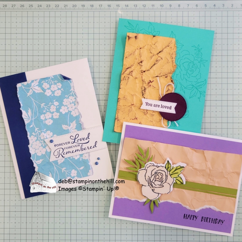 Next, I tried two-tone cardstock. I really like that after it’s torn, the edge is white. It was on the DSP too, but not as noticeable with the lighter DSP I used. I didn’t use the water spritzer this time.